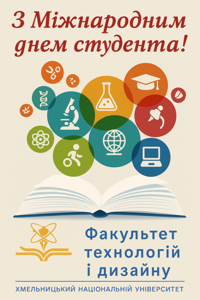 - Факультет технологій і дизайну Хмельницького Національного Університету щиро вітає своїх студентів з Міжнародним Днем Студента!